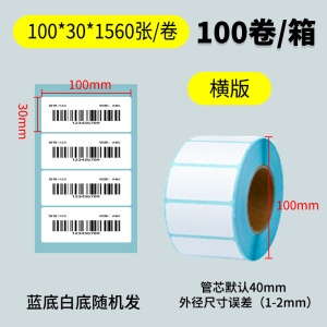 三防热敏100*30*1560张单排横版(蓝/白底随机发)