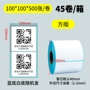 三防(优质款)热敏100*100*500张单排横版(蓝/白底随机发)