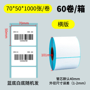 三防热敏70*50*1000张单排横版(蓝/白底随机发)