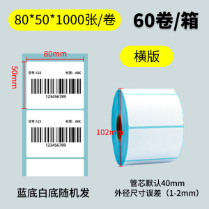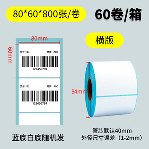 (特价款)热敏60*40*800张单排横版(蓝/白底随机发)