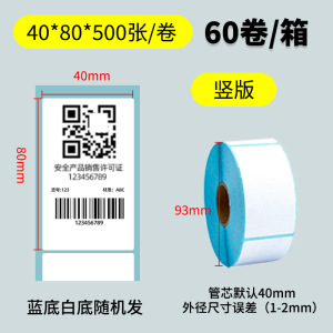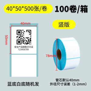 三防热敏40*50*500张单排竖版(蓝/白底随机发)