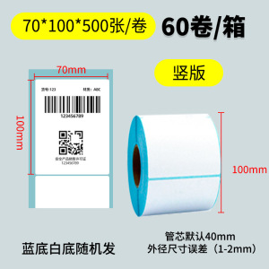 三防热敏70*100*500张单排竖版(蓝/白底随机发)