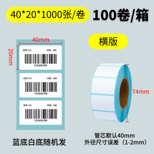 三防热敏40*20*1000张 单排横版(蓝/白底随机发)