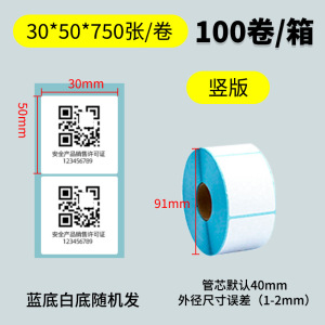 三防热敏30*50*750张单排竖版(蓝/白底随机发)