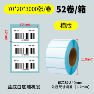 (优质款)热敏70*20*3000张单排横版(蓝/白底随机发)