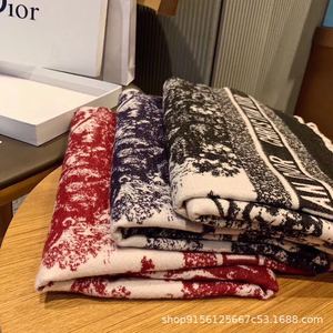 高版本D字母动物羊绒流苏印花围巾女冬季韩国时尚披肩外搭两用