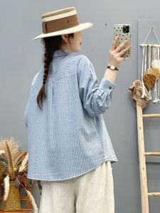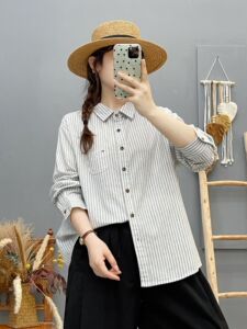 82316洋气套结口袋磨毛条纹长袖衬衫 女2025秋冬新款休闲显瘦上衣