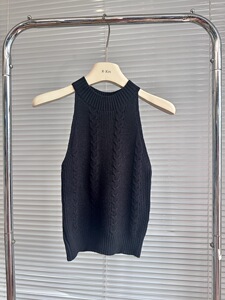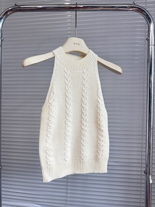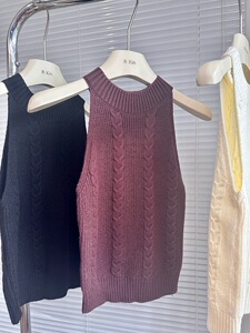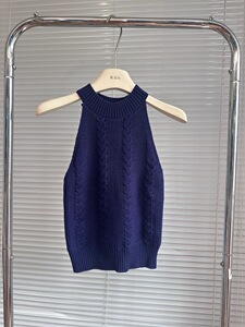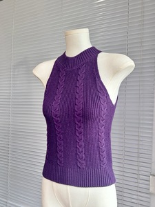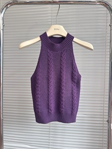 法式复古辣妹风紫色挂脖针织背心女秋季短款修身纯欲无袖吊带上衣