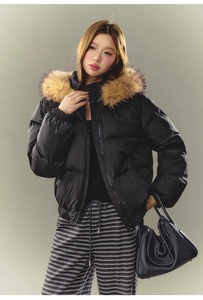 韩版慵懒毛领连帽棉服女冬季小个子简约百搭宽松保暖加厚棉衣外套