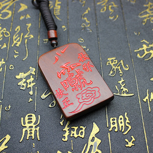 雷击枣木吊坠雷祖木牌填砂手把件随身令牌纯手工精雕木牌