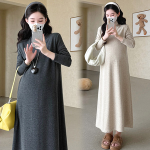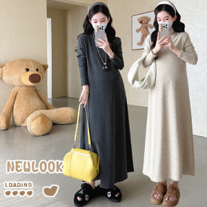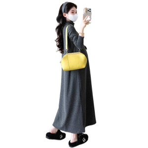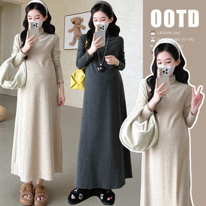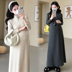 孕妇装2025秋冬新款懒人A字裙高级感简约半高领针织打底连衣裙子