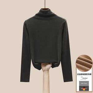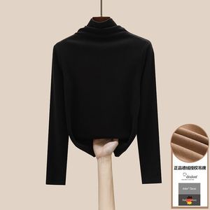 双面磨毛德绒打底衫女秋冬内搭长袖高领加绒加厚堆堆领保暖上衣女
