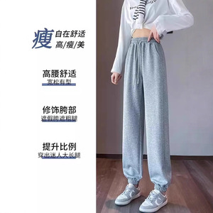 运动裤女春秋季宽松直筒抽绳休闲卫裤小个子高腰百搭显瘦束脚裤潮