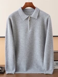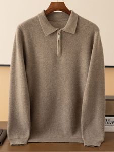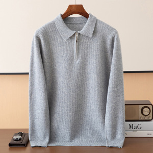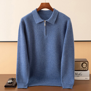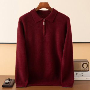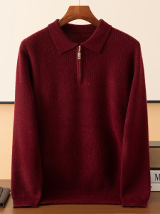 100%澳洲羊毛衫男士POLO半拉链领休闲针织保暖毛衣河北工厂直销