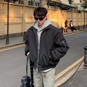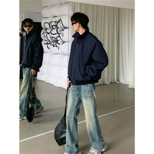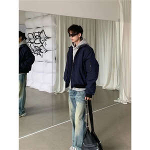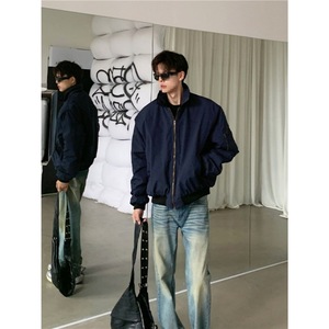 藏青色飞行员夹克棉服男女同款痞帅风外套美式复古高街潮牌棒球服