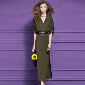 菲梦伊高级设计感衬衫连衣裙女秋装通勤简约时尚收腰气质开叉裙子