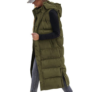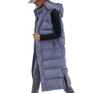 H3221 外贸代发速卖通跨境新款男式背心女式绗缝连帽纽扣长