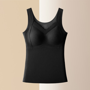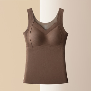 保暖内衣秋冬无痕马甲带杯垫蚕丝贴片免穿文胸加厚打底背心上衣女