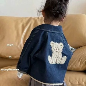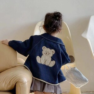 韩版女童牛仔外套2025春秋新款复古卡通刺绣小熊翻领宽松夹克上衣