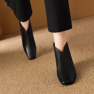 2025新款复古英伦风粗跟尖头真软皮显瘦西部靴女短靴半坊手工女鞋