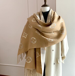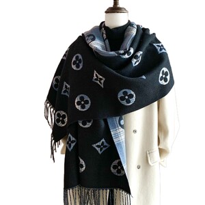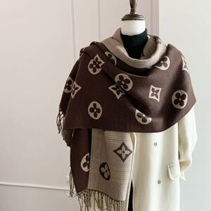 老花高级感仿羊绒双面围巾女冬季百搭花朵披肩办公室时尚披风外搭