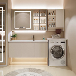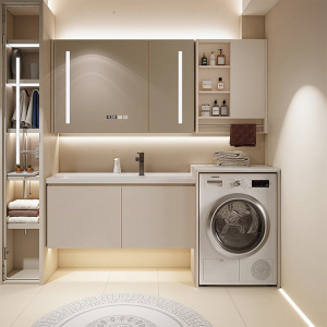 搓衣板陶瓷一体盆洗衣机一体柜卫生间洗手台洗脸盆柜组合智能镜柜