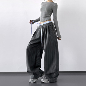 美式复古休闲裤女2025秋季新款宽松显瘦百搭直筒阔腿西装裤潮