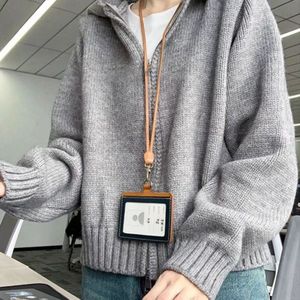 感慵懒风连帽卫衣拉链毛衣女秋冬宽松显瘦设计感针织开衫
