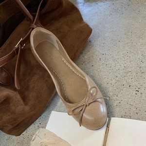 网红大码41-42小红鞋平跟鞋里外蝴蝶结擦色做旧女浅口单鞋高级感
