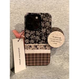 复古黑底碎花拼接棕格纹磁吸支架适用于16promax151413保护壳女壳