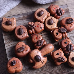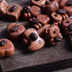 小熊咖啡豆爱心配饰桃木配件珠DIY文玩饰品配件表情小鱼手串搭配