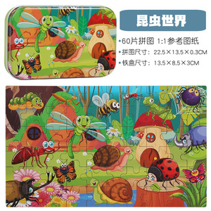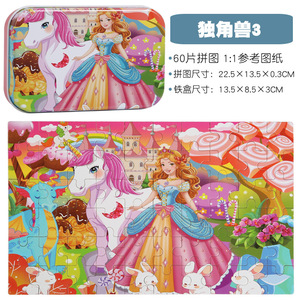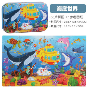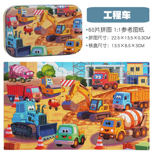 60片铁盒拼图儿童卡通木制拼板拼图幼儿园宝宝早教益智动漫玩具