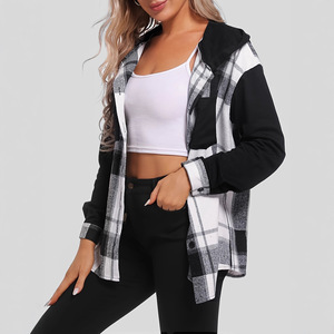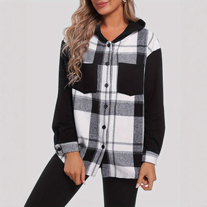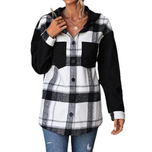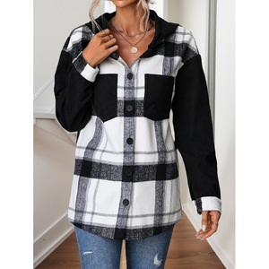 外贸亚马逊独立站跨境欧美女装春秋季新款格子印花衬衣时尚外套潮