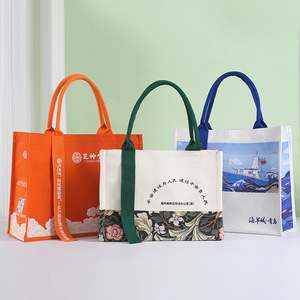 帆布袋定制logo立体高端企业飘带款托特包中秋高校彩印覆膜立体袋