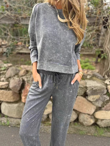 2025欧美跨境爆款外贸新款秋冬女士休闲百搭系带圆领长袖裤套装女