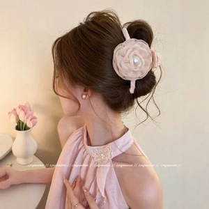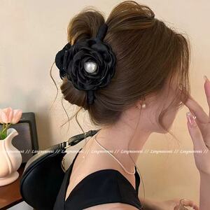 山茶花珍珠抓夹韩国新款气质发夹后脑勺盘发鲨鱼夹气质公主夹发卡