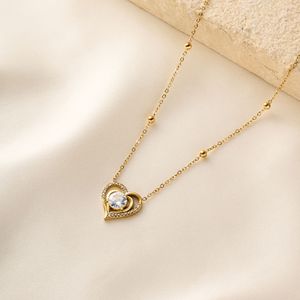跨境ins风不锈钢爱心锆石项链排钻轻奢精致小众设计不掉色锁骨链