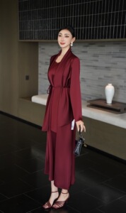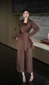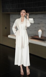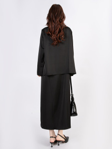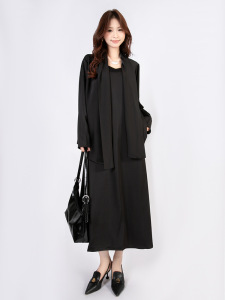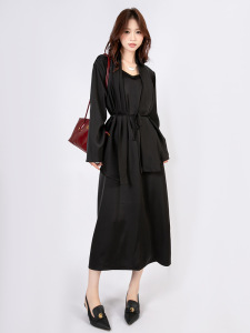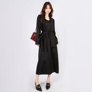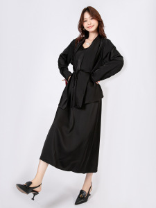 菲媛气质开衫上衣+纯色吊带连衣裙缎面套装 简约时尚百搭两件套女