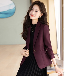 紫红西装外套女韩版修身气质小个子设计感春秋通勤长袖高级感西服