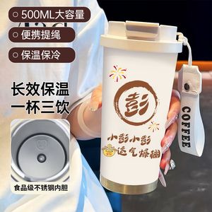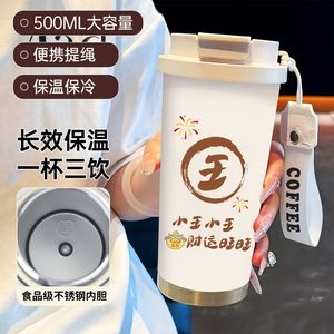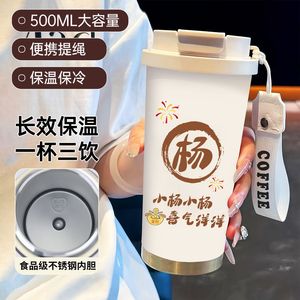 百家姓保温杯学生便携男女车载大容量不锈钢水杯吸管高颜值咖啡杯