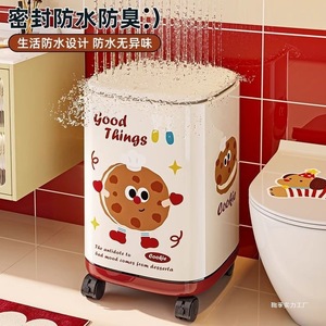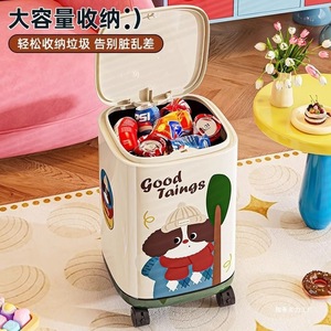 垃圾桶带轮家用新款高颜值按压大容量客厅厨房卧室卫生间厕所纸篓