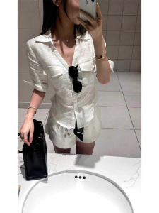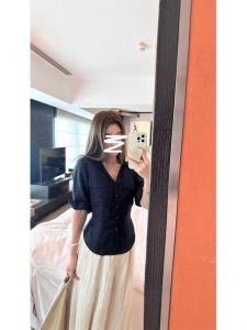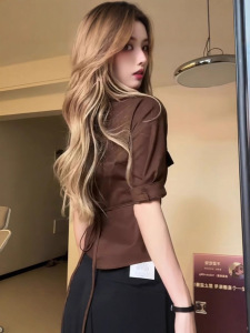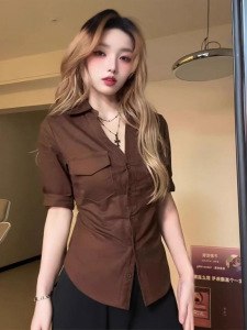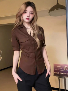 辣妹polo领五分袖衬衫女早秋新款修身显瘦设计感气质收腰显瘦上衣