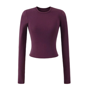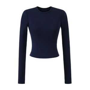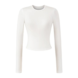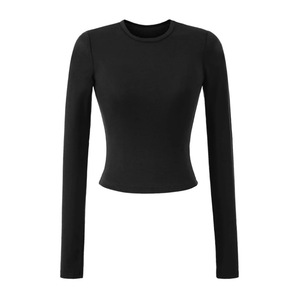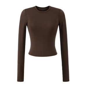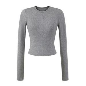 天丝圆领长袖T桖女2025秋季新款美式辣妹纯色修身弹力打底衫上衣