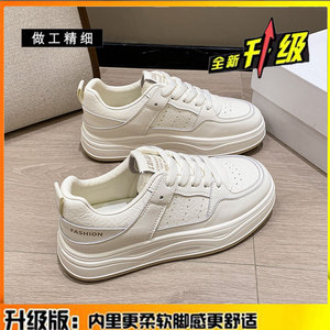 牛皮版~真皮厚底小白鞋子女款板鞋2025秋季新款百搭休闲运动女鞋