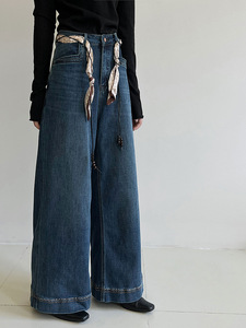 鹿西 丝巾绑带百搭直筒微喇叭裤女25秋季新款高腰显瘦牛仔裤25001