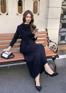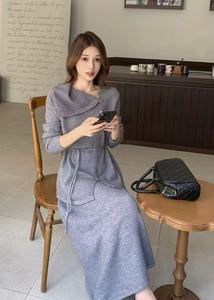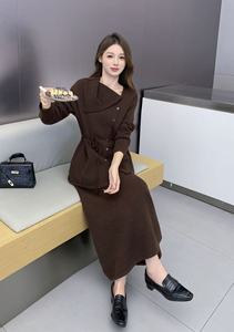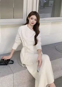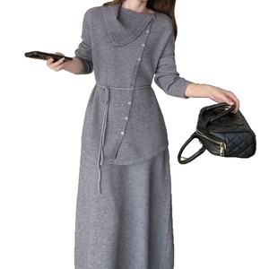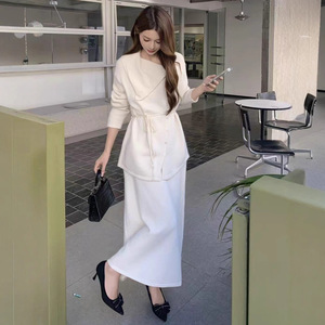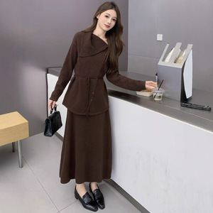 秋冬新款设计感慵懒风套装女宽松系带针织衫上衣+半身裙两件套