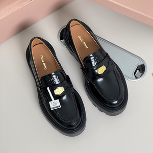 莞产牛货!谬家新款复古金币厚底乐福鞋女英伦风真皮一脚蹬小皮鞋