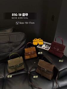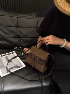 复古手提翻盖包时尚手提绕带托特包中古波士顿小方包百搭斜挎包