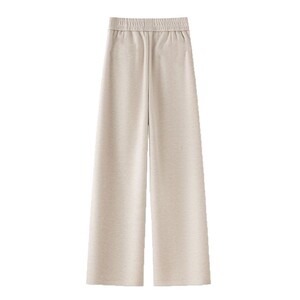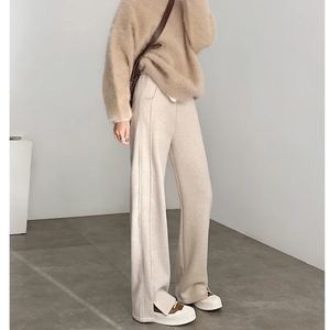 裤子女款人字纹休闲裤加绒加厚毛呢直筒阔腿裤秋冬开叉垂感长裤