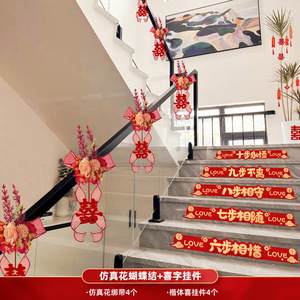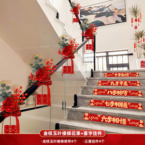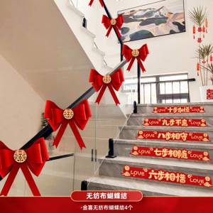 纱幔婚礼男方女方新房农村院子布幔楼梯扶手装饰结婚婚房布置批发